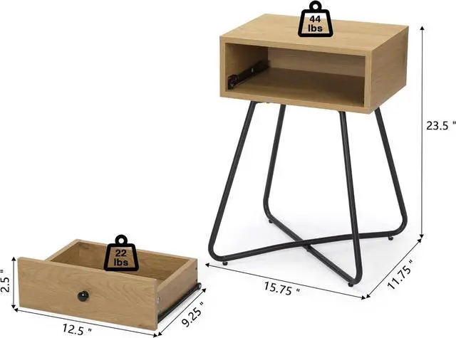Sturdy with Cross Legs:A combination of MDF cabinet and iron legs, the top of the side table is strong to hold up to 44 lbs and the drawer can withstand 22 lbs.