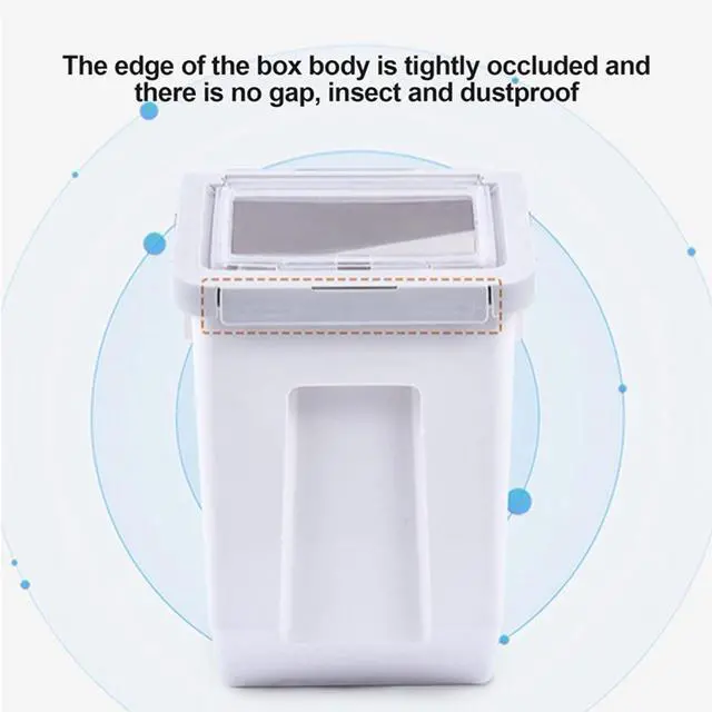 5KG large capacity with measuring cup. Transparent lid and measuring cup for you to take as much as you want.