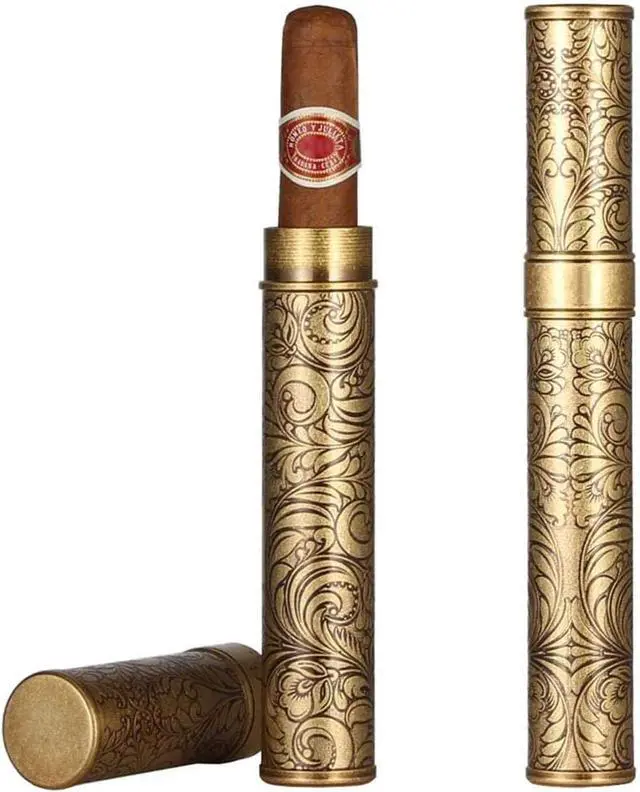 Cigar Humidor Case-- The cigar tube is made of pure copper with exquisite embossed patterns, luxurious and beautiful. Sturdy and durable box keeps your cigars in perfect condition.