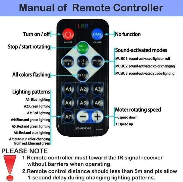 3 sound-activated modes+7 lighting modes + Rotating speed control.