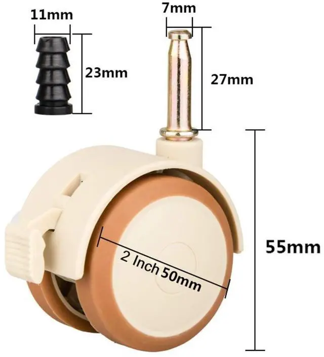 Size:diameter of swivel caster = 2 Inch; installation height = 55mm; installation pole:7*27mm. Size reference picture