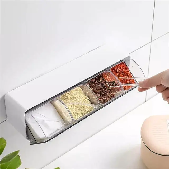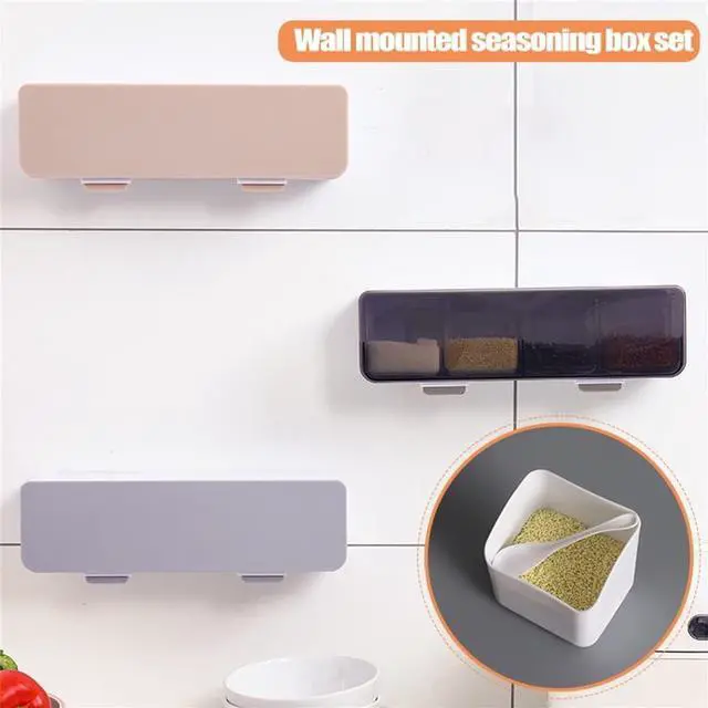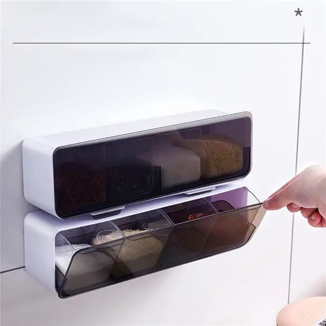 Easy to clean and reusable Built to last. Safe to use. Includes 4 spice boPB9rrg needs. Punch-free and self-adhesive design will not damage your walls. Open the dust cover to use, complete the pan cover, and make the whole kitchen clean and beautiful.