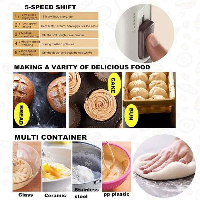 5-Speed design: This egg beater is designed with 5 speeds for different food types and for accurate miPB9rrg results, you can do many kinds of delicious food.