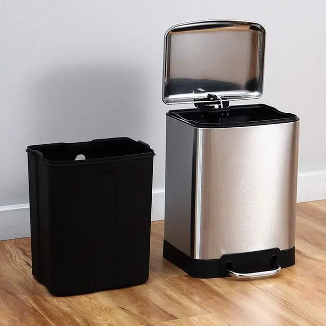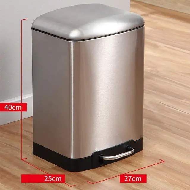 ttribute: Material: Metal - Stainless Steel / / Capacity: 6L12L / / Color Classification: Metallic / / Size: 22.5 * 22.5 * 32.5CM, 27 * 25 * 40CM / / Shape: Square / / Open cover mode: pedal type / / Applicable scene: indoor, living room, kitchen, other;