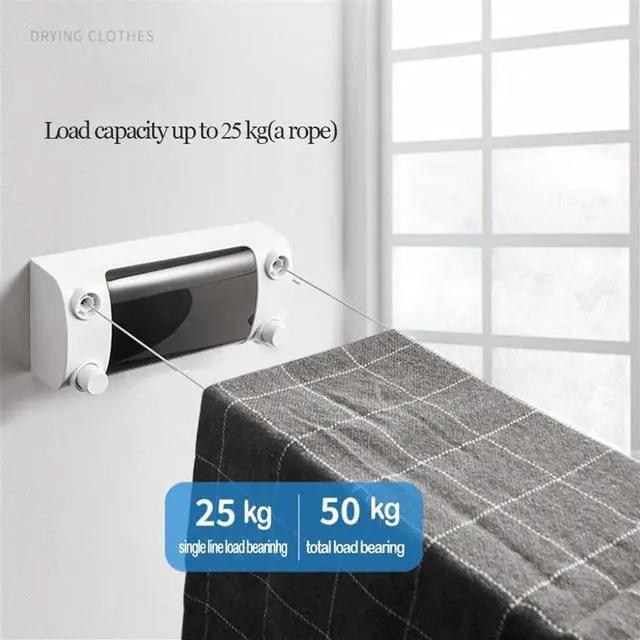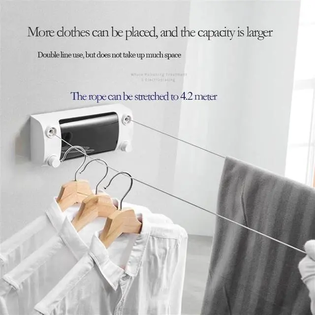 Durable plastic body that can pull out steel strings up to 4.2m.Simply extend the cord and hang it on the opposite wall, latching to provide ample drying space.Can be used in bathroom, shower, laundry or balcony.Can be installed on tiles, boards, metal surfaces, ceramics, unpainted walls, flat and smooth surfaces.Bath Hardware Set Finishing: Stainless steelSpecification:Surface Finishing: Vacuum CoatingMain Material: MetalPackage Included:1* retractable washing lineIf you have any questions about the product, please contact me, we will contact you within 24 s and give you a satisfactory answer.The colors may have different as the difference display, please understand.