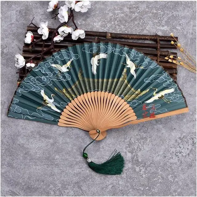 Folding Fan Ladies Folding Fan Retro Style Ruihe Figure Carrying Silk Hanfu Decoration Small Fan Fan (6 Hooks) (1)