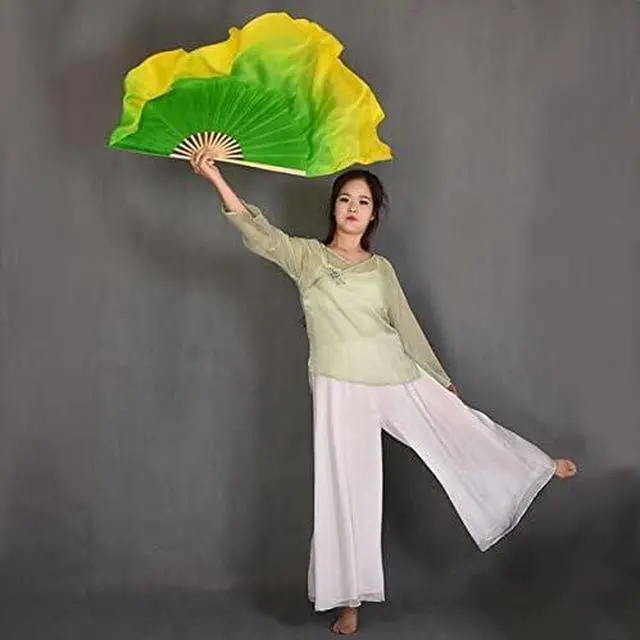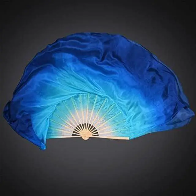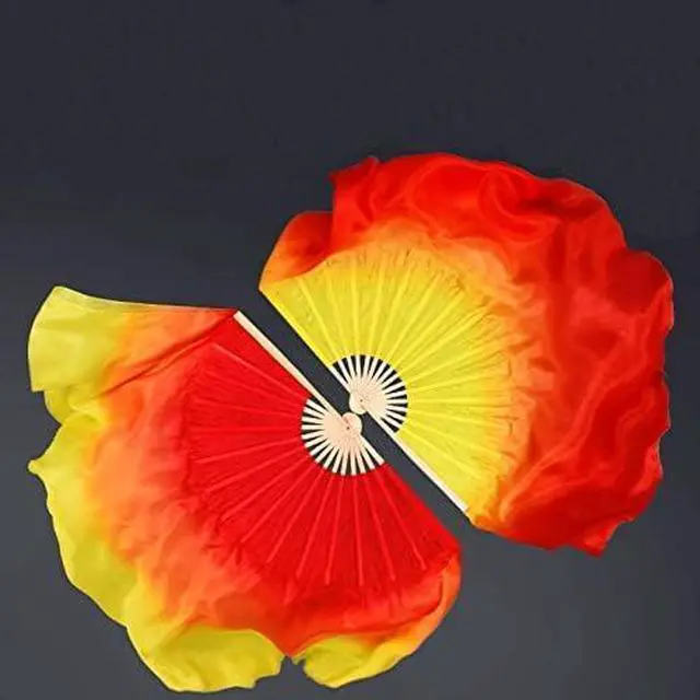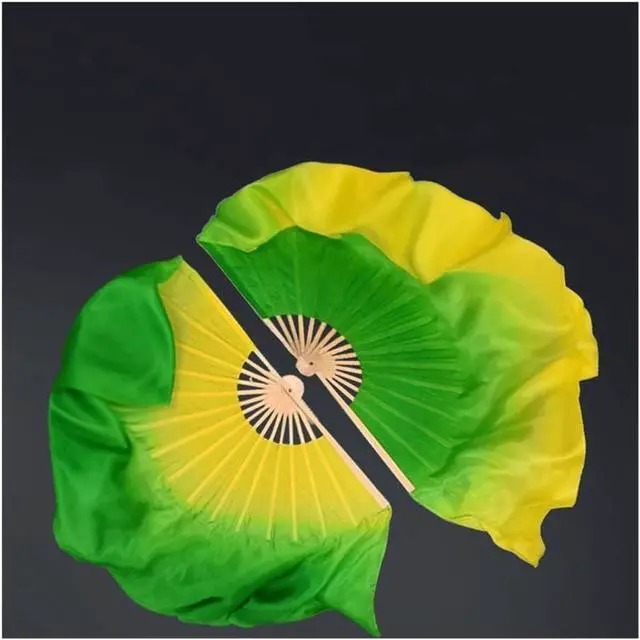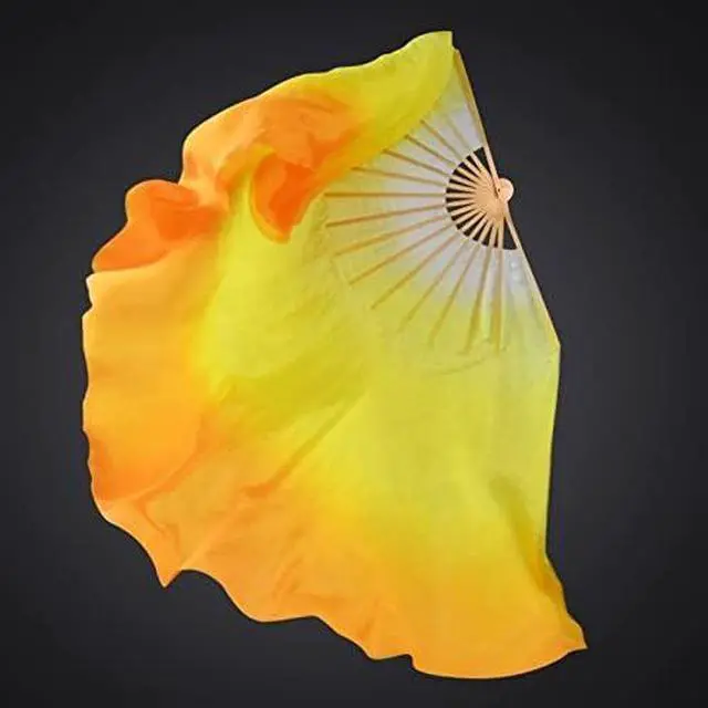Folding Fan 1Pair Gradient Color Belly Dance Silk Fan Veils Two-Sides Real Silk Folding Fan Oriental Dance Props Fans 41Cm-86Cm Long Fan (Color 6 36Cm)