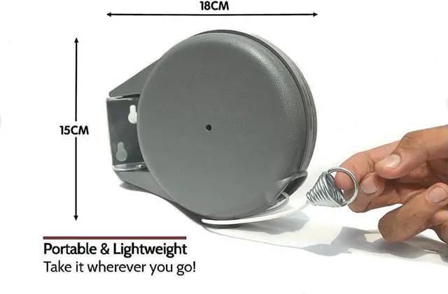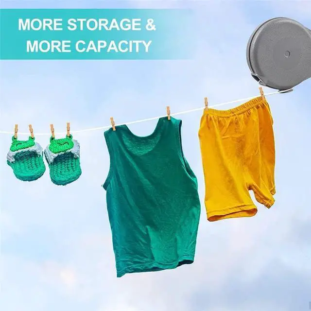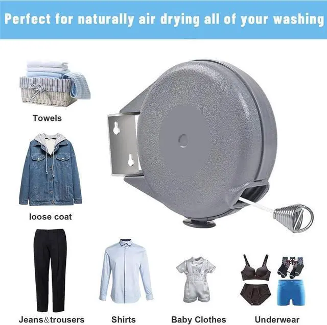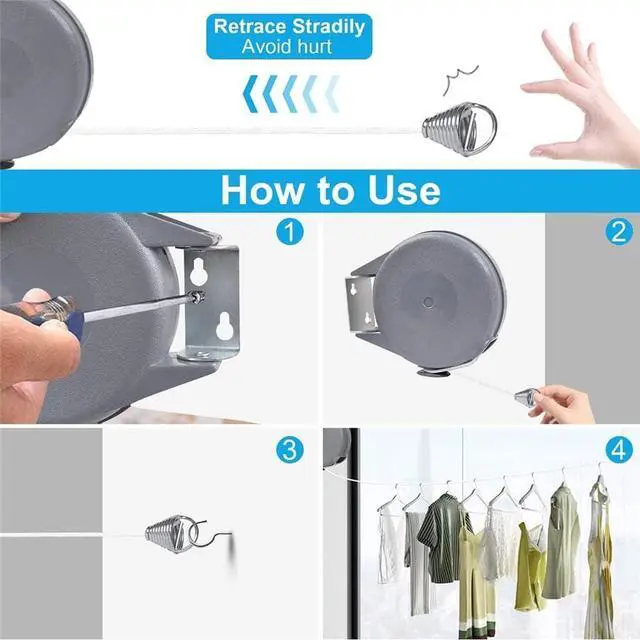 Comes with installation screw accessory, the retractable clothesline is easy to install and great for hotel and home use.The rope is 15.0m long enough for hanging all your families' clothes.It is waterproof with great durability against breakage.The clear and smooth surface looks high-grade, brief and design, nice home decoration.Function: Suitable for drying clothesSpecification:Material: ABS+PVC+Fiber YarnSize: Clothesline 15m/clip 6*1.2cmColor: as shownPackage Included:1* retractable washing lineIf you have any questions about the product, please contact me, we will contact you within 24 s and give you a satisfactory answer.The colors may have different as the difference display, please understand.
