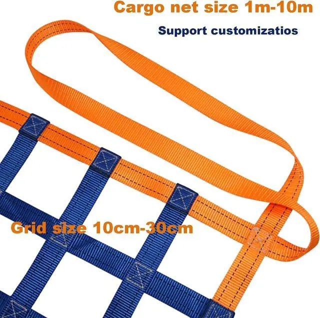 Polyester Material- The cargo net is made from a mixture of high quality synthetic polyester yarn and strong drawn wire, with a single rope breaking force of up to 650kg, it is a good helper for lifting goods with strong wrapping and large surface area!