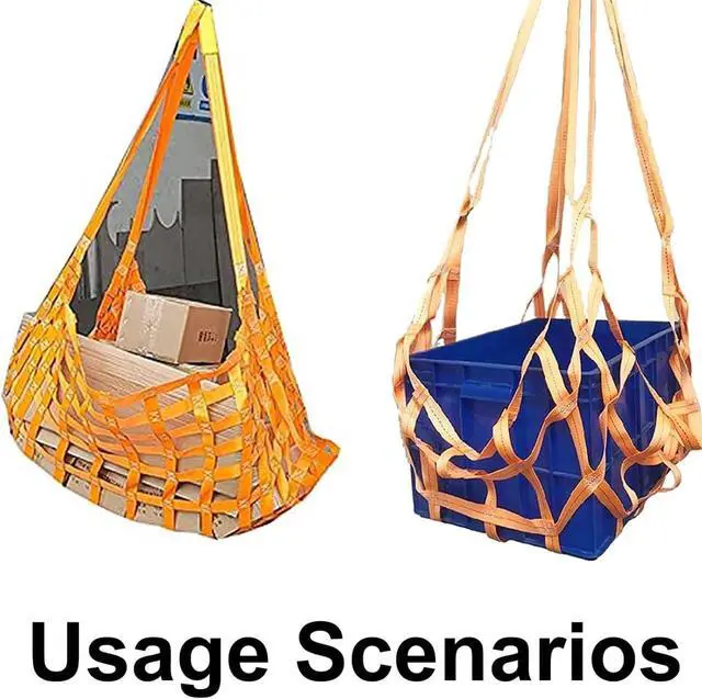 Lifting Net Material- The flat belt lifting net is a sling made into a grid through a special process, with 4 lifting ropes (length support customized), which can completely wrap the goods and be lifted by the lifting device and used to transport the goods
