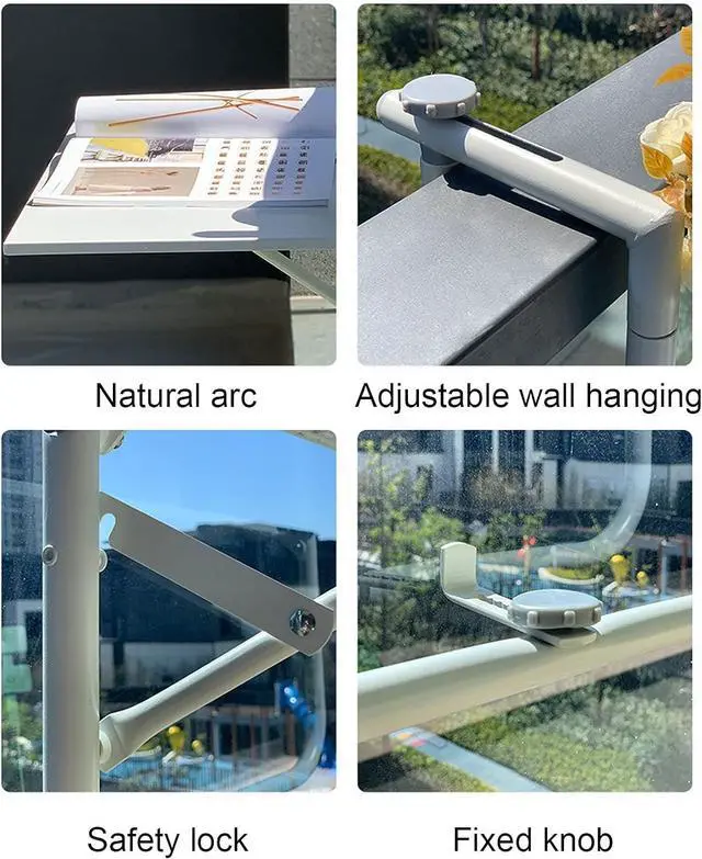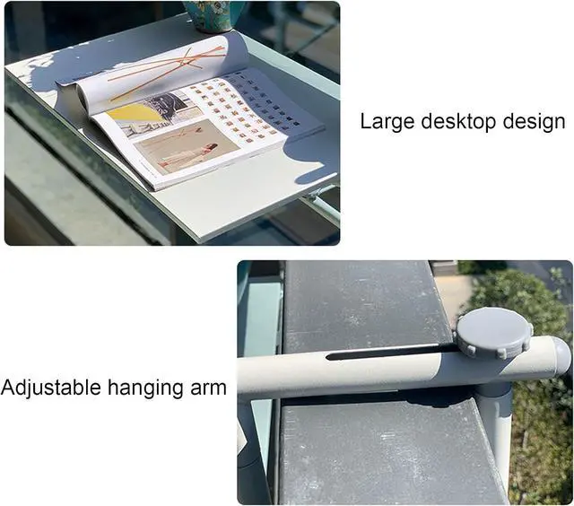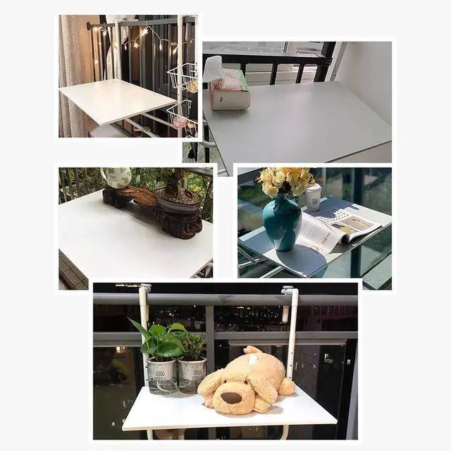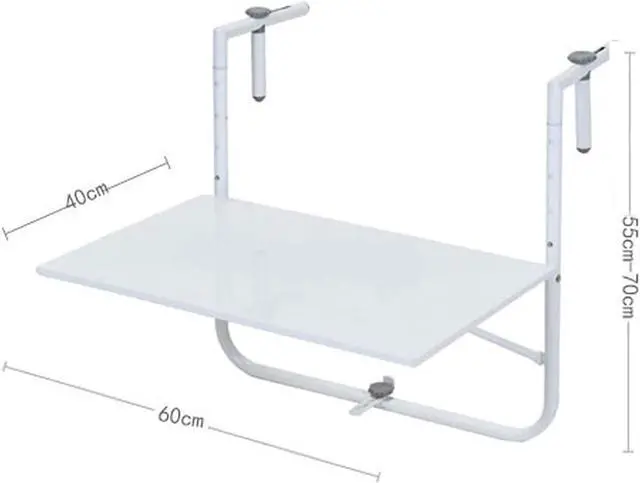 -Outdoor Indoor Folding Hanging Table Adjustable Balcony Railing Table -The absolute space saver on your balcony -Perfect for relaxation on the balcony -A great table wich is practical as well as space-saving Technical data: Material: Iron Whether to assemble: Yes Folding angle: 90 degrees Size: 60*40cm (height adjustable) Support railing width: 4-11.5CM Height adjustment: 55-70CM Scope of supply: Balcony hanging table frame notes: The size is manually measured, and the plus or minus error is about 2CM, depending on the actual product received