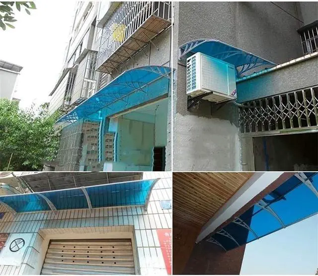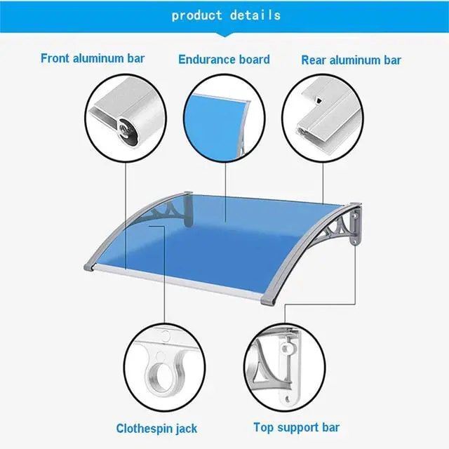 : Our outdoor door and window awnings are suitable for homes and offices, used as door awnings, awnings and balcony covers. It can prevent damage caused by snow, rain and sunlight all round. Our awnings are not only functional coverings, but also great decorations in your living space. feature: Use high-quality materials to refine the craftsmanship Guaranteed durability and quality, unused Sturdy structure, good strength, easy operation Washable and quick-drying Shape a small shield to prevent rain or scorching sun from entering your house Perfect house decoration specification: Bracket material: ABS Material: Polycarbonate Fixed rod material: aluminum Size: 60 * 60cm, 60 * 80cm, 60 * 100cm, 60 * 120cm, 60 * 200cm, 80 * 80cm, 80 * 100cm, 100* 80cm Applicable to: household canopies Note: -Manual measurement, there may be an error of 1-m. -Due to display differences, there may be color differences, please refer to the actual product.