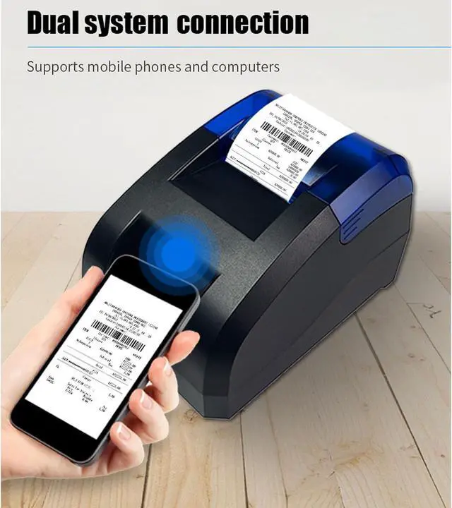 Dual System Connectivity: The receipt printer supports both USB and connections, allowing usage with phones and computers. It can connect simultaneously with up to 7 phones for and an additional phone for maximum convenience.