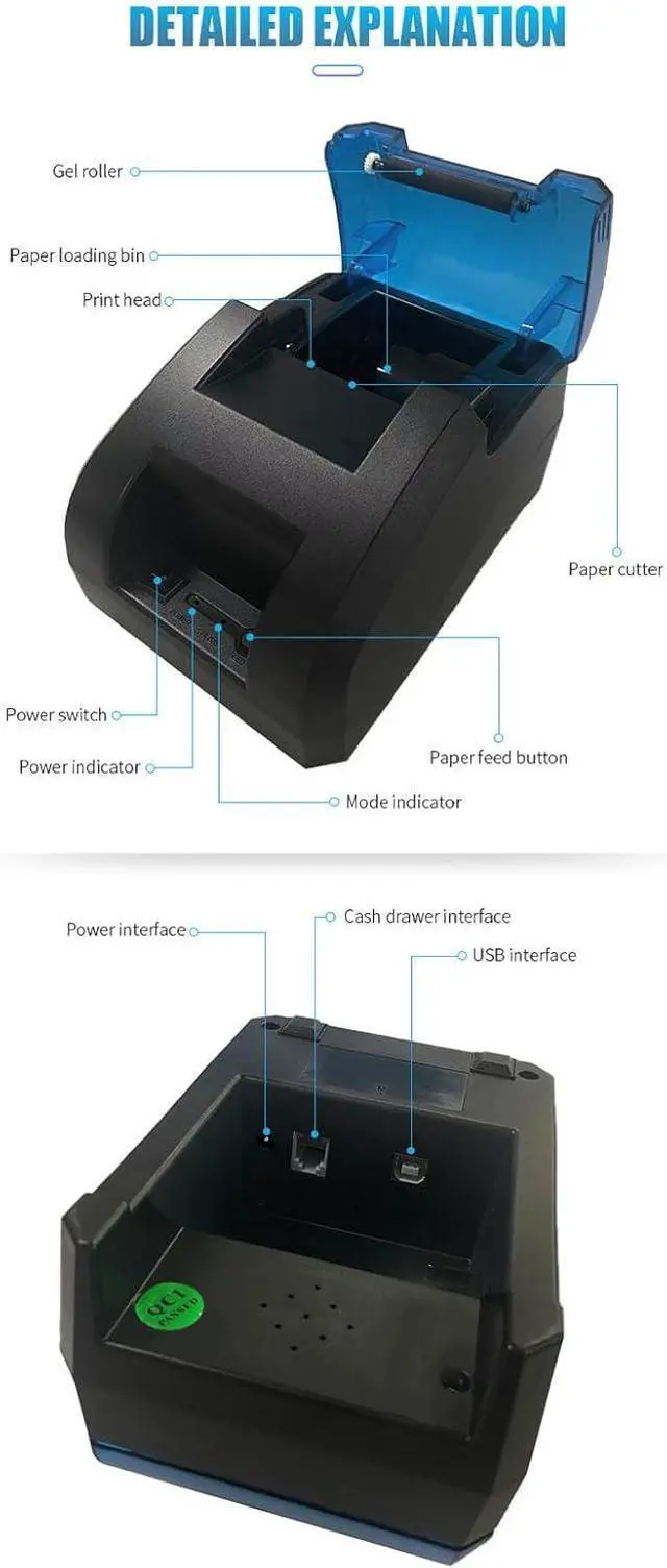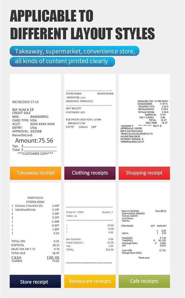 Versatile Application: Ideal for restaurants, takeaways, supermarkets, and convenience stores, this 58mm thermal receipt printer meets the diverse needs of busy retail environments, enhancing customer service efficiency.