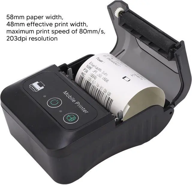 1. Basic Values: thermal ticket printer has 58mm paper width, 48mm effective print width, maximum print of 80mm/s, 203dpi resolution.