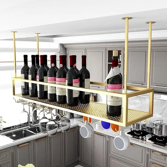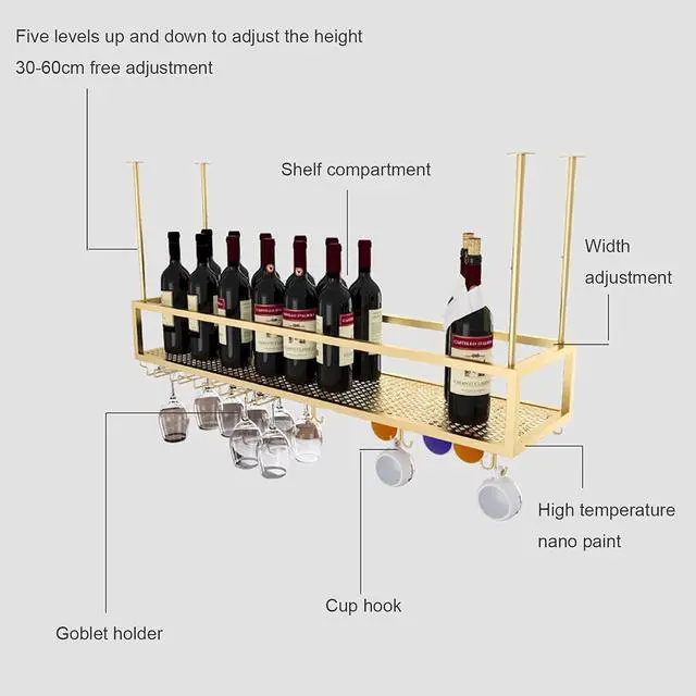 It was perfect for bar, kitchen, pantry, wine cellar, cabinet, tabletop, etc Name: Wine rack Color: Black, gold Material: metal iron Size: Length 23.6 - 47.2 x Depth 11.8 in Adjustable boom: 11.8in-23.6in Style: retro industrial style Type: storage rack/wine rack quickly: 1. Does not include decorative items shown in product photos. 2. Due to manual measurement, there may be some errors, please allow a difference of 3-5 cm, thank you. 3. Because spotlights and different people have different understandings of colors, there may be a certain color, but please choose carefully within a reasonable range.