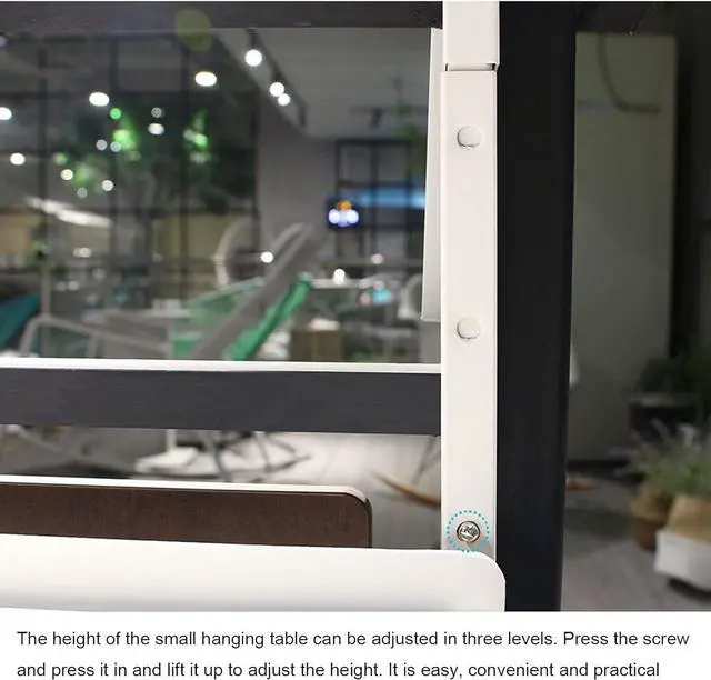 [Easy Assembly]: Hang and tighten it over the rail in just seconds, and snap the brace in to hold the table up.
