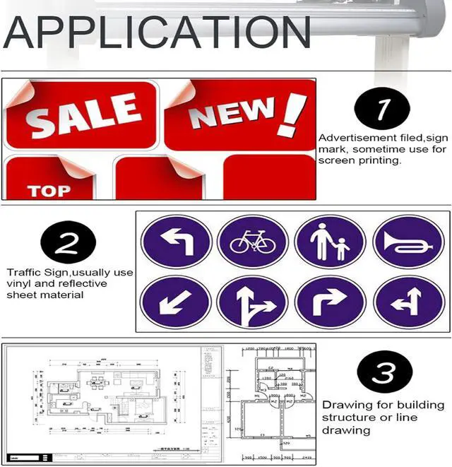 WIDE APPLICATION: This vinyl cutter is versatile and suitable for various applications in advertising, sign making, architectural drawings, automotive decoration, glass crafting, heat transfer, indoor decor, label creation, and more. Please note it is not compatible with Mac systems.