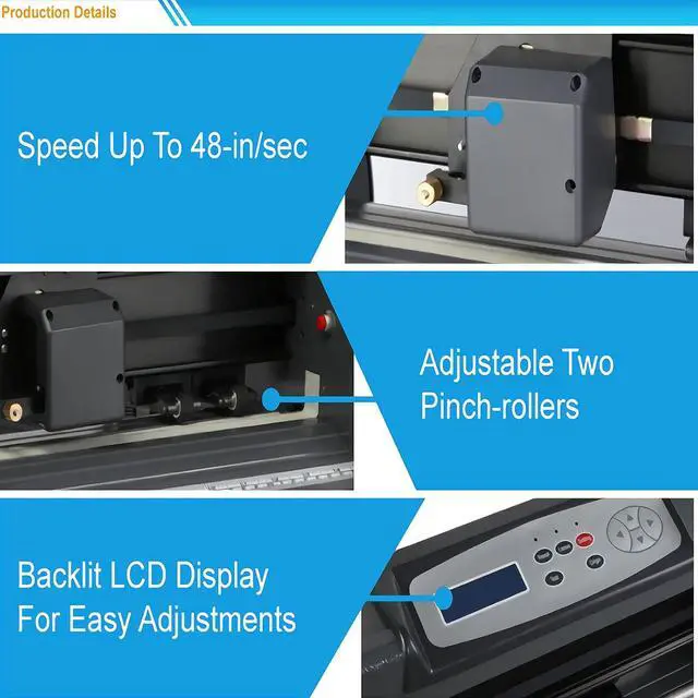 SUPERIOR ROLLER SYSTEM: The vinyl cutter features three adjustable pinch-rollers on a guide rail to accommodate different paper widths, combined with a high-quality ball-bearing dual roller media roller system for smooth operation.