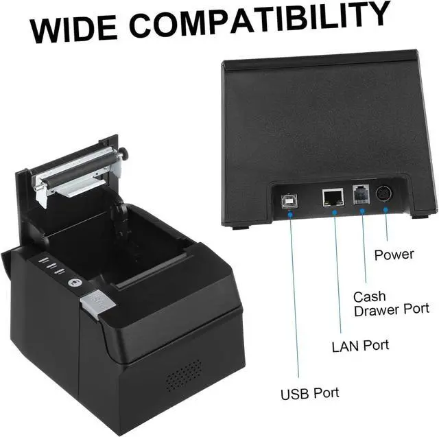 Versatile use: the receipt printer supports a wide range of receipt paper types and sizes, making it suitable for use in various industries and applications,pos printer,thermal ticket printer