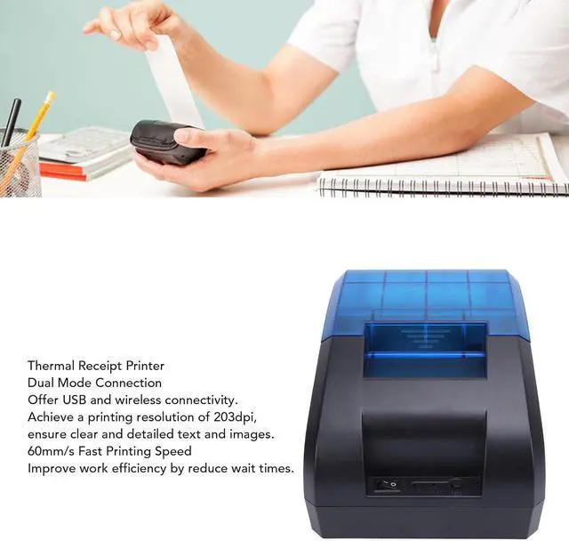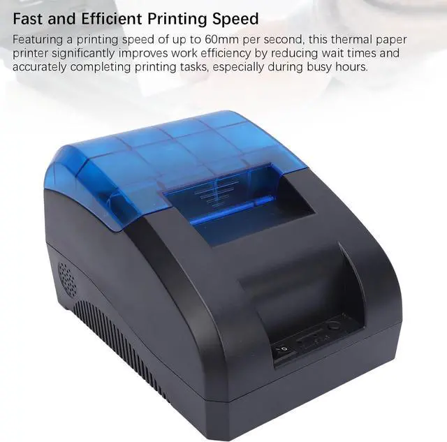 Fast and Efficient Printing Speed: Featuring a printing speed of up to 60mm per second, this thermal paper printer significantly improves work efficiency by reducing wait times and accurately completing printing tasks, especially during busy hours.
