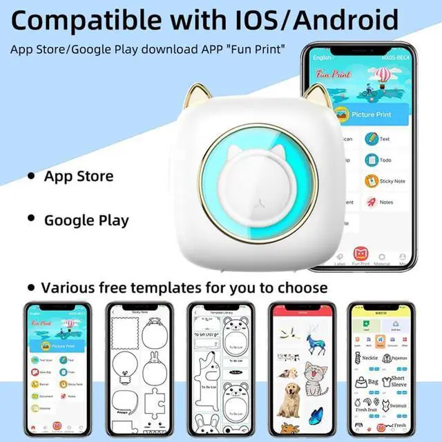 All in One Printer: Support multiple functions, it can print photos, labels, messages, lists, records, files and so on. The APP offers a variety of fonts and themes to make your photos stylish.