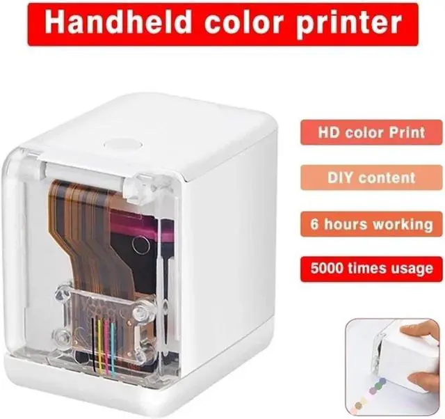 Mini portable handheld color inkjet printer suitable for printing patterns logos text and barcodes