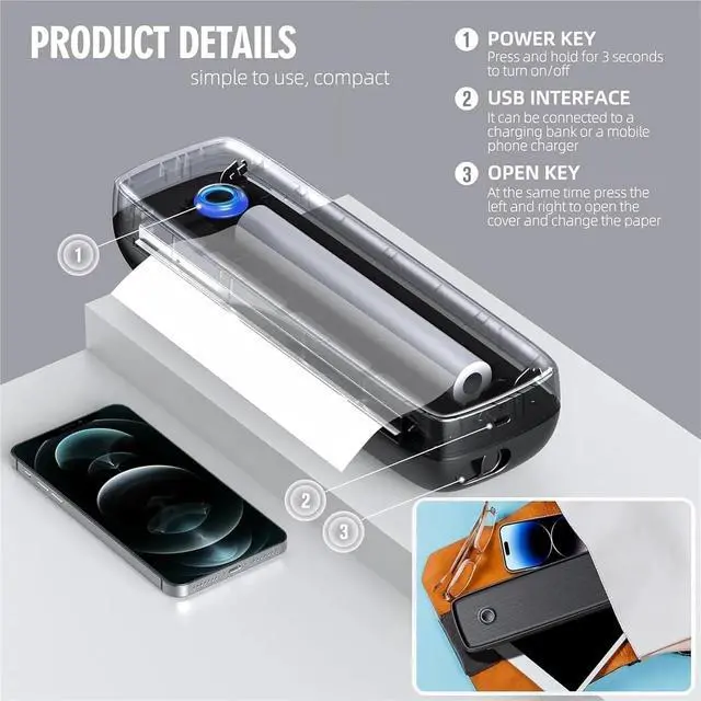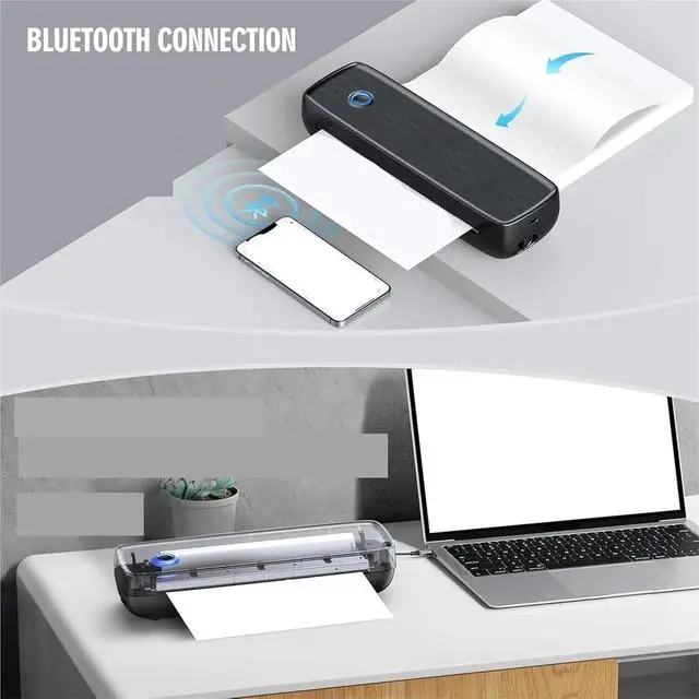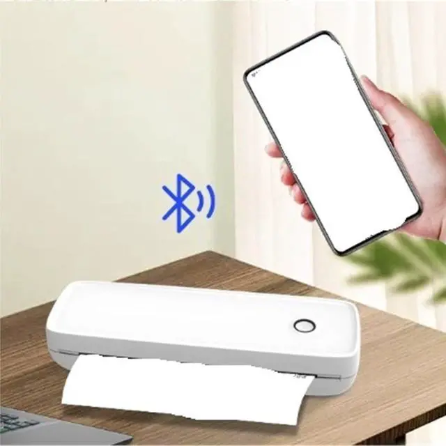 Thermal printer prints wirelessly via Bluetooth and uses direct thermal technology for text and barcodes without ink or toner