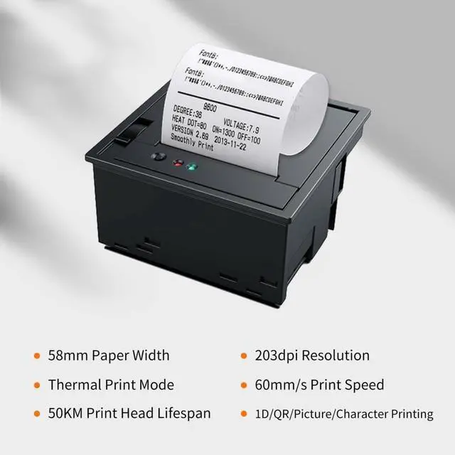 58mm embedded pr, 60mm/s pri , clear priing and hi efficiency, it will work perfectly with your device.