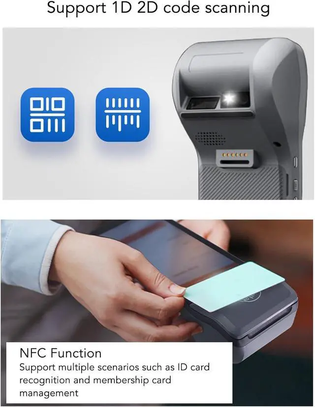 [5MP Camera Scanner] With a 5MP camera scanner that has flashing light and autofocus function, this handheld POS terminal enables efficient and accurate scanning of 1D and 2D barcodes.