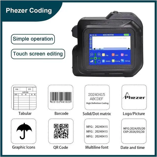 5. Precise Print Distance Control: The Handheld Printer offers precise print distance control, with a maximum print distance of 2-5mm. This ensures accurate and consistent printing results, making it suitable for a wide range of applications, including product labeling, packaging, and more.
