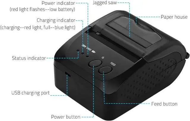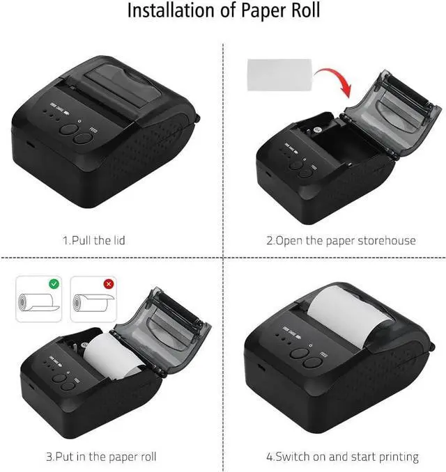 Using 58mm thermal paper and adopting easy structure of paper loading, convenient to install and change the paper roll, also easy to use and maintain.