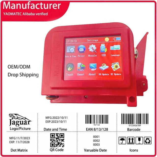 Mini Portable Printer QR Bar Batch Code Logo Label Portable Handheld Jet Thermal Inkjet Printer(RED Printer no Cartridge)