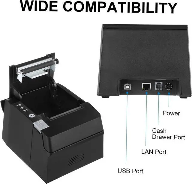 Versatile use: the receipt printer supports a wide range of receipt paper types and sizes, making it suitable for use in various industries and applications,thermal receipt printers,recipt printer