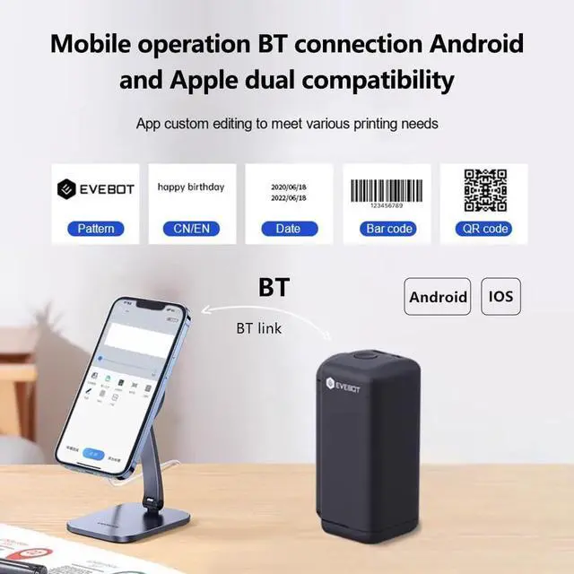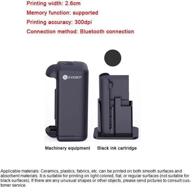 Built-in BatteryBuilt-in 500mAh battery, with Type-C charging port, convenient to use. Comes with a self-developed quick dry ink, which will not wash away and-scratch, the ink cartridge is replaceable.