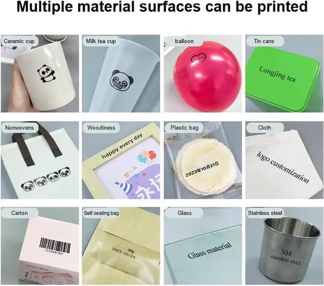 Handheld Printlnd Suitable for printing a variety of light and flat surfaces or regular curved surfaces. Pattern, English Chinese characters, QR code, barcode, dot matrix font, numerical date, handwritten graffiti, etc., to meet various printing needs.