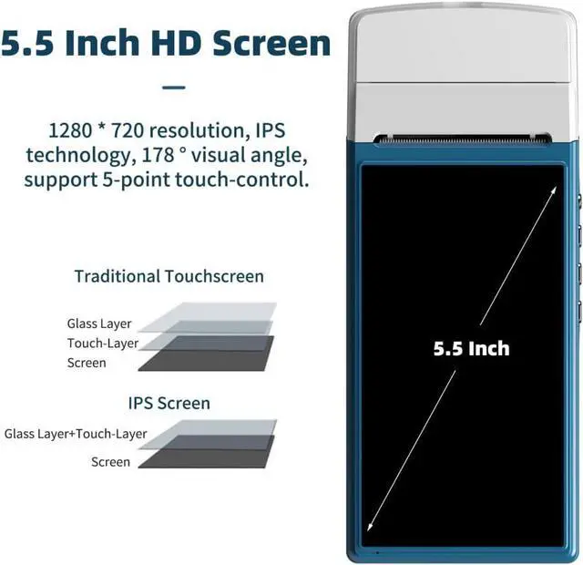 Ergonomic Design: Equipped with 5.5 inch color screen and full digital keyboard, realize the good experience of large screen and one hand opeion. Newly designed ergonomic scanning angle can effectly reduce wrist movement and fatigue.