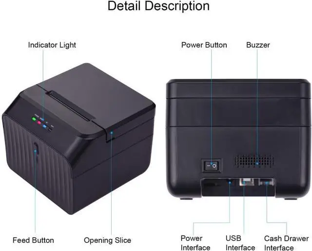 Support USB connection, compatible with XP/7/8/10. (Linux& OS are not support) Equipped an interface for cash drawer.