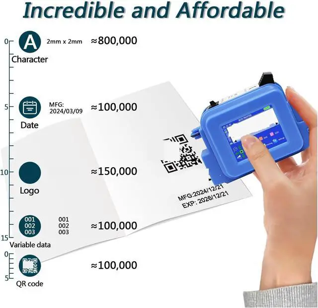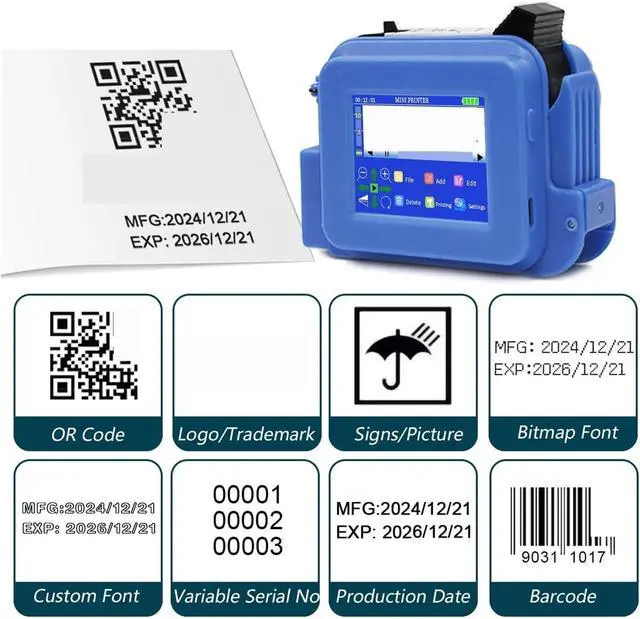 Print Content:Time,Date, Counter,QR code, Bar code, LoGo