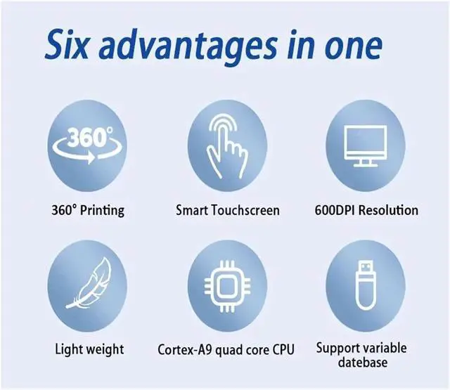 - One-k Printing: 600dpi maximum print resolution, 360° all-round printing.