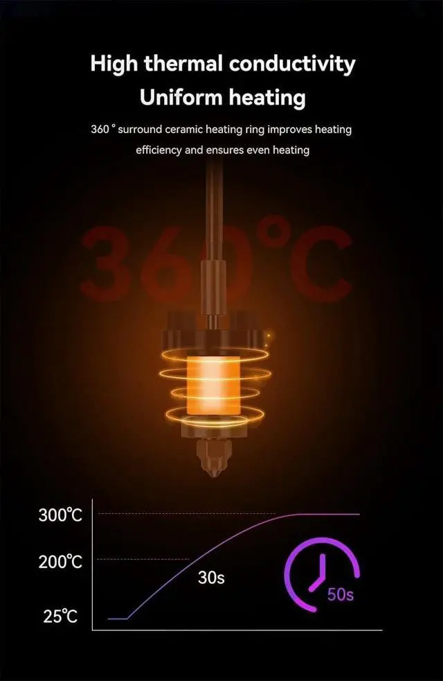 For Creality K1c Hotend Upgrade For Creality K1c Hotend|High Thermal Conductivity Heating Block: Features a 360° ceramic heater for rapid heating to 200 in 40 seconds, ensuring efficient and uniform heating.