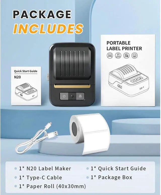 The N20 Portable thermals Label Printer offer connectivitys and fast 30mm/s printing, eliminating the need for inks or toner while supporting 2inch wide labels for barcodes, and address