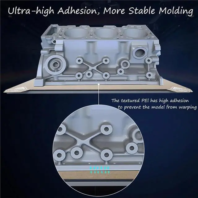 Double Side Texture PEI: Both sides of the printing plate are frosted PEI coating, which can be used on both sides. The PEI coating is resistant to high temperatures and wear, and is easy to maintain and clean.