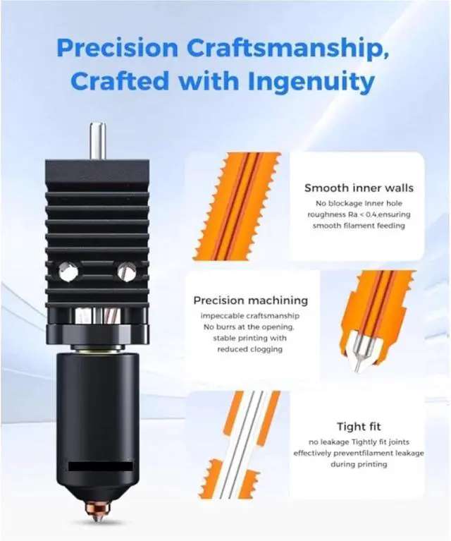 High Flow Rate:Enlarge the nozzle chamber, the maximum flow rate can reach 32mm³/s, and support 600mm/s high-speed printing,Burr-free orifice, not easy to clog the material, stable printing.