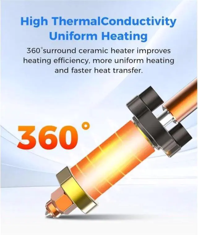 Uniform Heating: Excellent heat distribution and thermal insulation properties ensure uniform heating of the printing surface,360° Surround Ceramic Heater improves heating efficiency, heating more evenly and transferring heat faster.