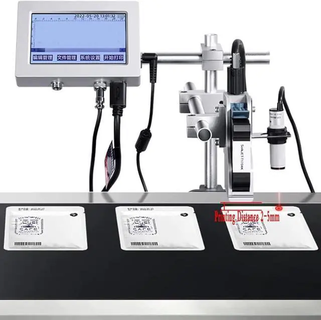 Online Inkjet Coding Machine: This small intelligent assembly line coding machine can automatically print QR codes, barcodes, language characters, graphics, serial numbers, text , symbols, dates, logos, etc.