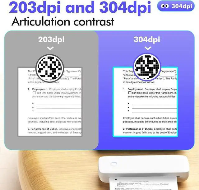 Clear Printing & Long-Lasting: Our BT printer equipped with print head, With a high-definition 304DPI resolution, every printout is guaranteed to be precise and sharp, ensuring professional-quality results every time. Adopt advanced thermal printing technology, no ink cartridges or consumables are required, energy saving and environmental friendly. It features a built-in 2550mAh large capacity lithium battery, capable of printing about 2.5hrs after a full charge.