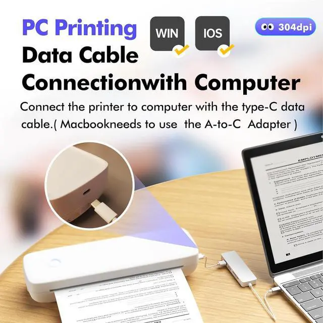 Flexible Connectivity: This printer supports both wireless and wired connections. You can connect it to your mobile device via Bt and use the "Luck Jingle" app available on the App Store (iOS) or Play (Android). It can also be connected to a PC or computer with USB cable for printing.