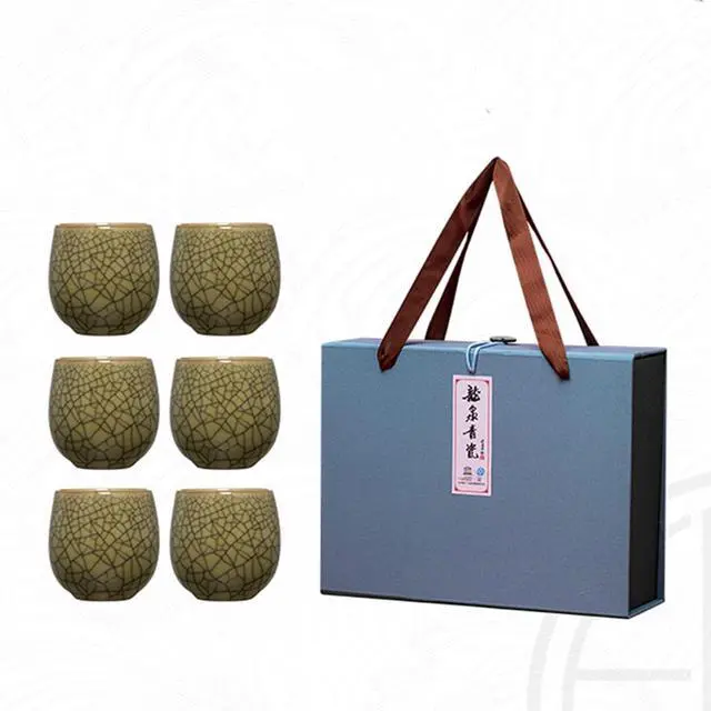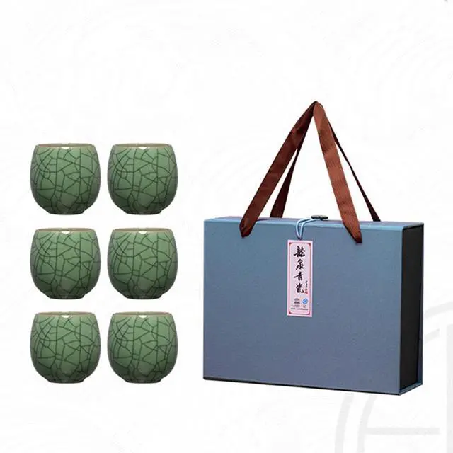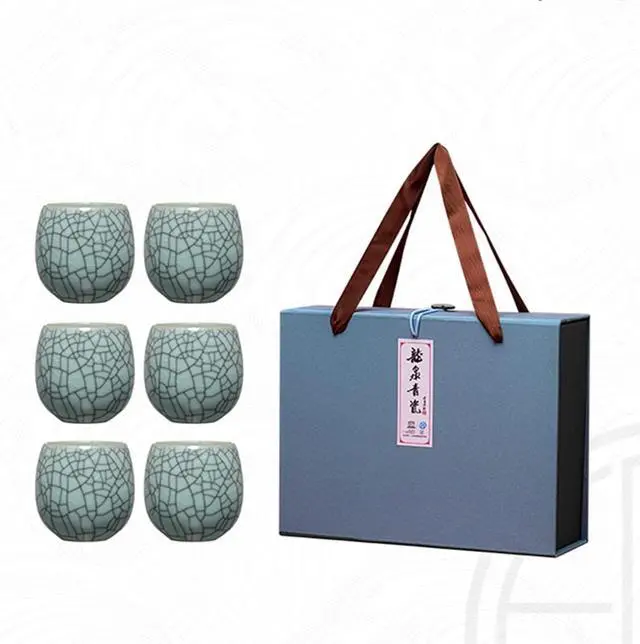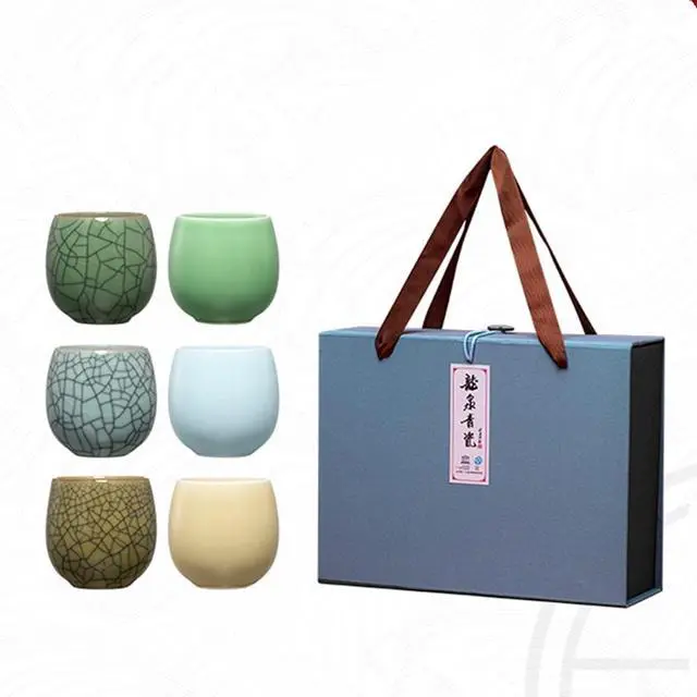 This Celadon Ceramic Teacup Set offers a perfect blend of tradition and elegance. With 6 beautifully crafted tea cups, each set features Ge and Di kiln designs fired at 1300°C, ensuring exceptional durability and heat resistance. The set includes 7 distinct colors, including Ge Kiln Plum Celadon, Powder Celadon, and Beige Glaze, making it a versatile and sophisticated addition to any tea collection. Each cup has a 175ml capacity, perfect for enjoying your favorite hot or cold beverages. Whether you're using it for a formal tea ceremony or casual tea breaks, these teacups enhance your experience with their refined, high-end craftsmanship. Ideal for gifting, this set is a thoughtful present for any tea lover or as a holiday gift for loved ones.