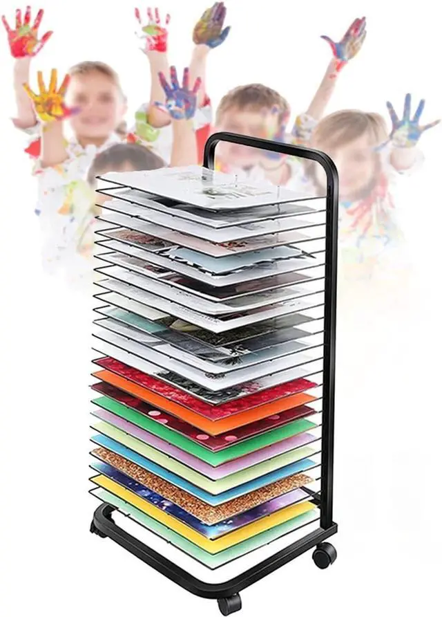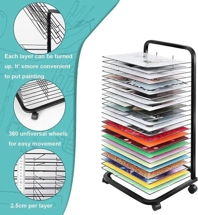 Artwork Drying Rack Foldable Easel with Pulleys, 25-Tier Metal Wire Art Paint Drying Rack for Studios, Art Classes, Kindergartens, Portable with Casters(25 Floors) (One Color 20 Floors)